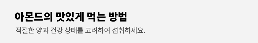 로스팅하기, 아몬드 버터, 아몬드 밀크, 샐러드 토핑, 스무디, 베이킹, 그라놀라, 요거트 토핑, 초콜릿 코팅 아몬드, 아몬드 크러스트 이와 같은 다양한 방법으로 아몬드를 즐기면, 영양가와 맛을 동시에 챙길 수 있습니다. 기호에 맞게 다양한 조리법을 시도해 보세요!